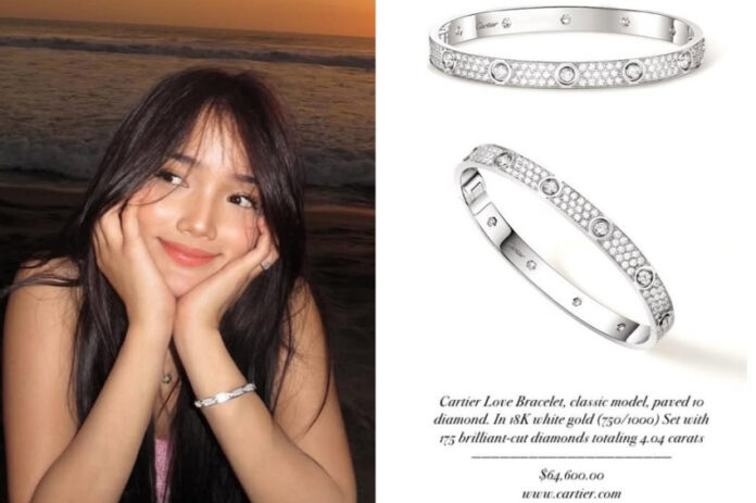 Fuji, atau yang lebih dikenal dengan nama Fujianti Utami, selalu menjadi pusat perhatian ketika berada di hadapan publik. Gaya busananya yang selalu up to date seringkali menjadi inspirasi bagi banyak anak muda dan mengundang decak kagum dari netizen. Belum lama ini, Fuji kembali membuat heboh di media sosial dengan aksesoris mewah yang dipakainya. Dalam sebuah unggahan di akun Instagram @fashion__selebriti, terlihat Fuji memakai gelang Cartier dari seri Love Bracelet dengan desain klasik nan elegan. Gelang berlian ini terbuat dari emas 18 karat, dihiasi dengan 175 berlian yang membuatnya semakin berkilauan. Gelang tersebut memiliki berlian seberat 4,04 karat yang terletak di bagian depan dan dalam, memberikan sentuhan glamor pada tampilan Fuji.